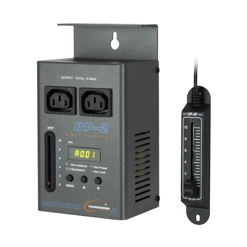 A useful, compact DMX dimmer/switch pack suitable for local control of a wide range of light effects. The UP2 makes an ideal switch pack for non-DMX effects or alternatively a handy follow-spot dimmer.