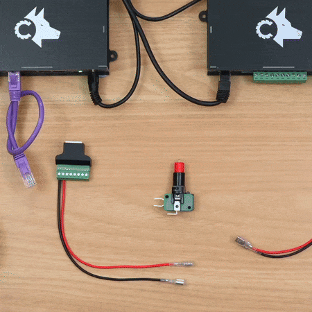 There's a 12v LED (included - for use with the DC Master) that will light up the button. The button activates a common arcade microswitch (included - for use with the Digital Master). There are also 4x 6.3mm per-wired spade connectors, to connect into the microswitch and LED (included).
